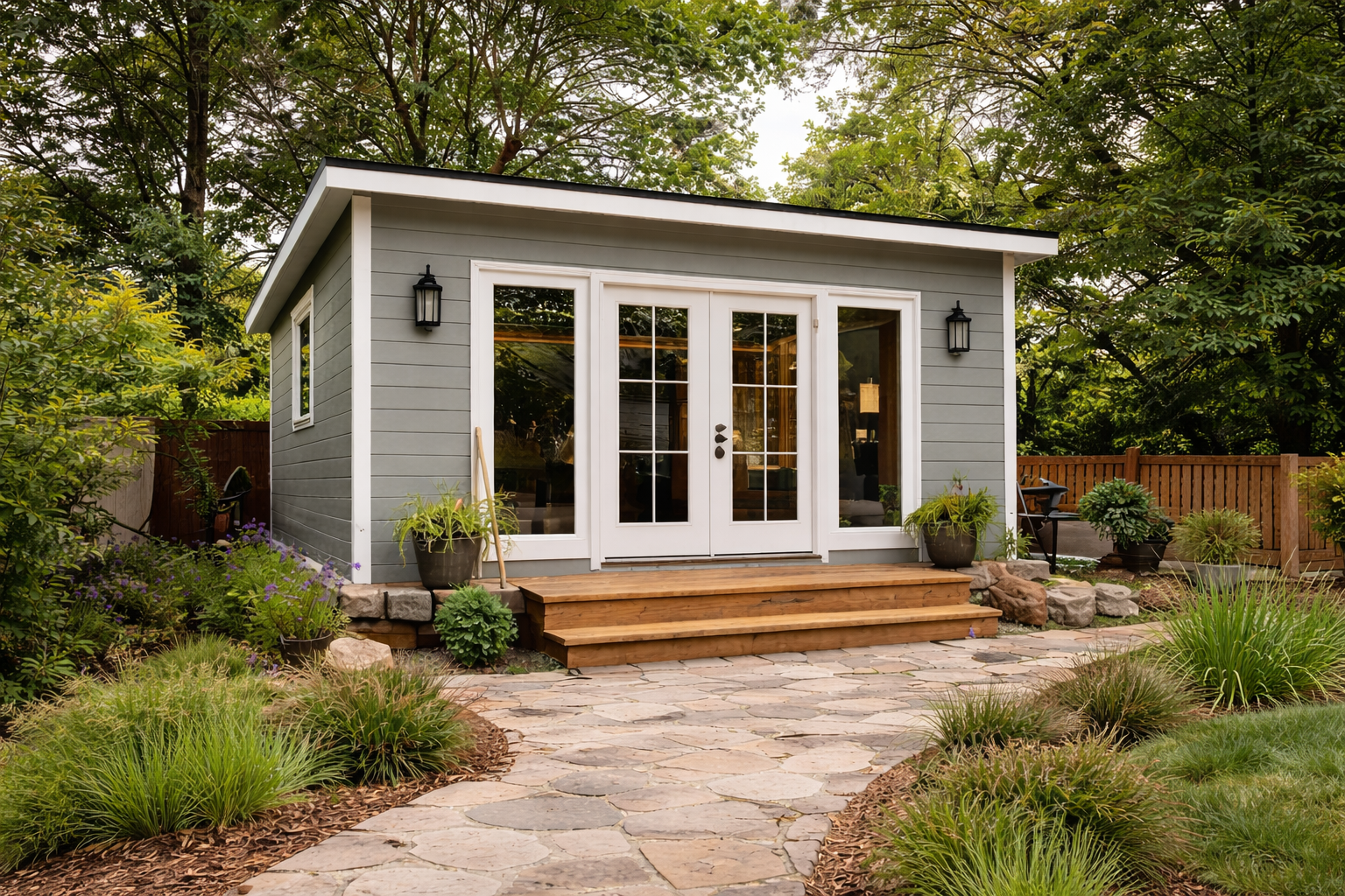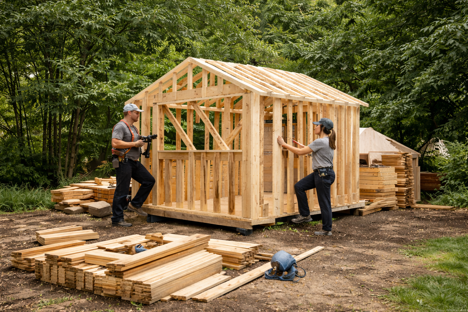 Precision-cut shed and studio kits shipped directly to your property, designed for confident DIY builders. Includes detailed plans, premium materials, and flexible sizing options.